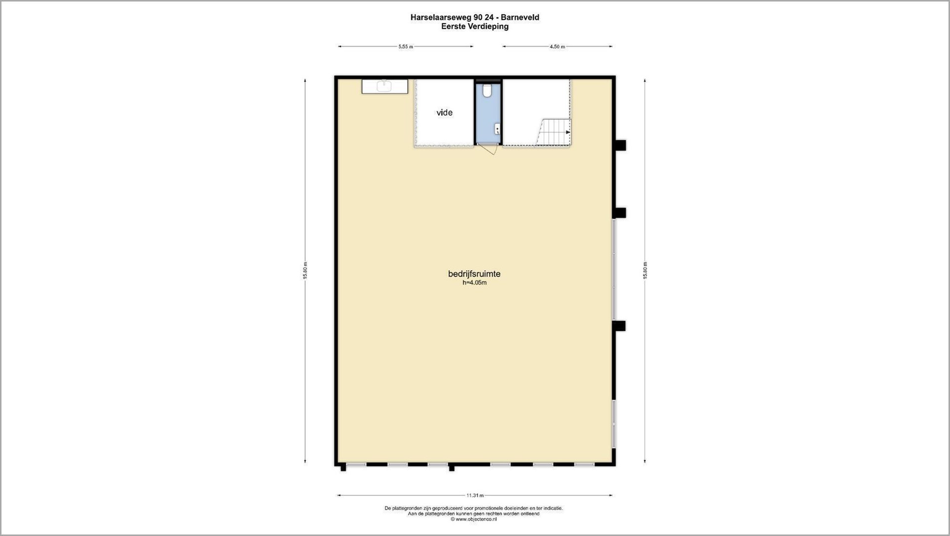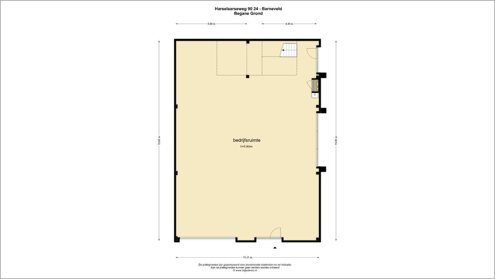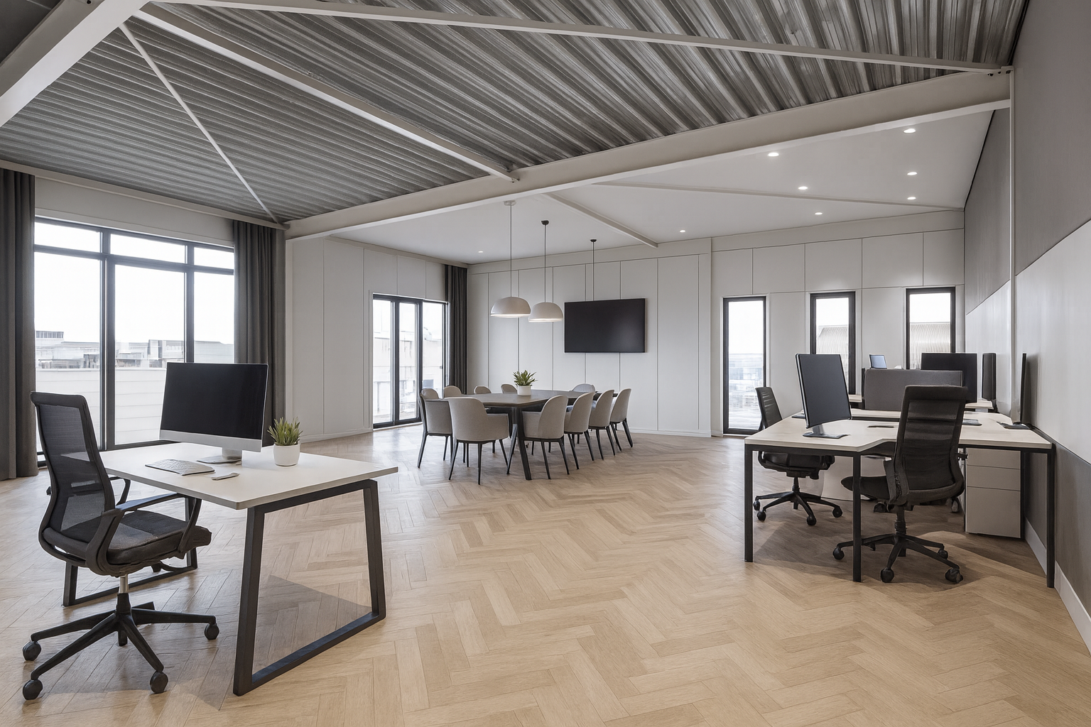 - Vrije hoogte van 5,60 meter op begane grond en 3,90 meter op verdieping;