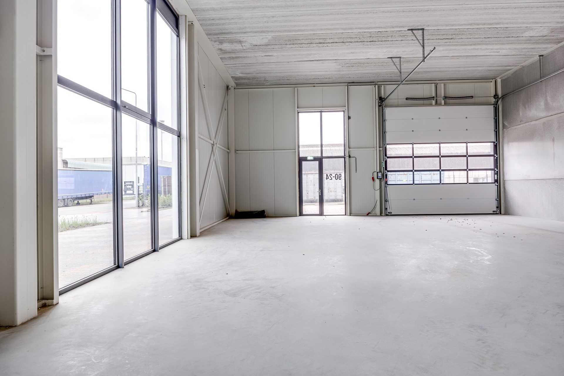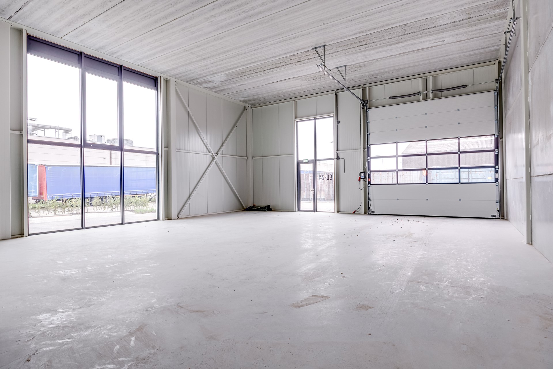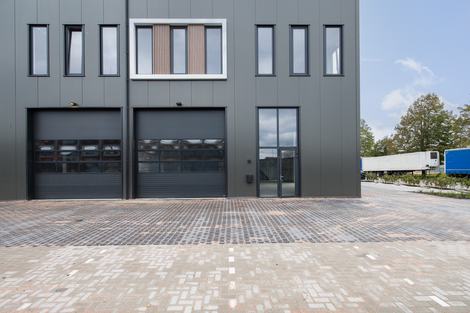 - Grote elektrisch bedienbare overheaddeur van 4,5 x 4,5 meter;