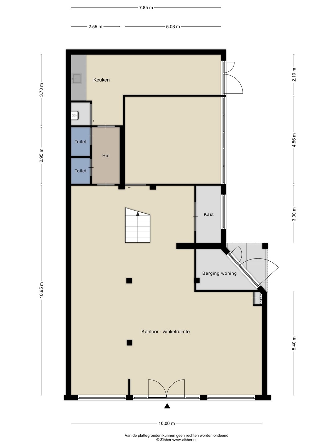 - Winkelpui (hout) met een frontbreedte van 10 meter;