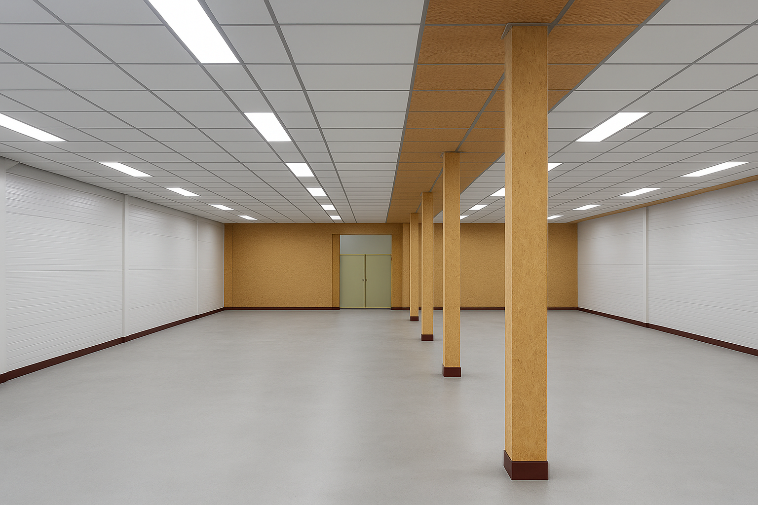 • Systeemplafond met verlichtingsarmaturen;