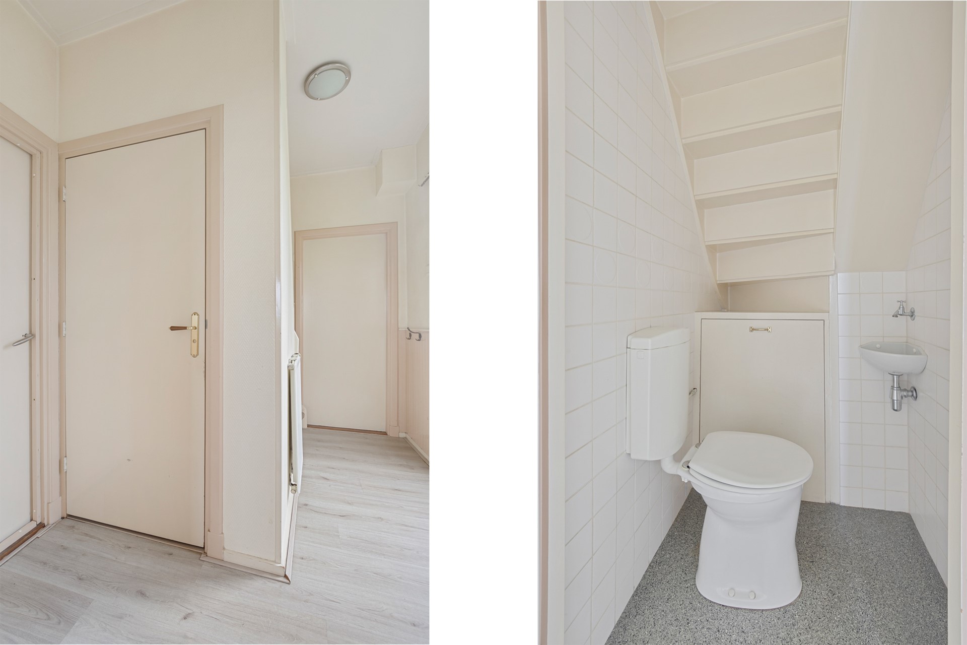 Via de entree bereikt u de hal met toilet en trapopgang. Aan de rechterzijde bevindt zich een badkamer met douche. Vanuit de hal komt u in de woonkamer waar tevens een keukenblok met spoelbak en gasfornuis aanwezig is. Naastgelegen ligt de keuken waar ook een aansluiting is voor de wasmachine. Op de begane grond is er een slaapkamer met ensuite een badkamer met douche en wastafel en een tweede los toilet, vanuit het halletje bereikbaar. De hal geeft ook toegang tot buiten.