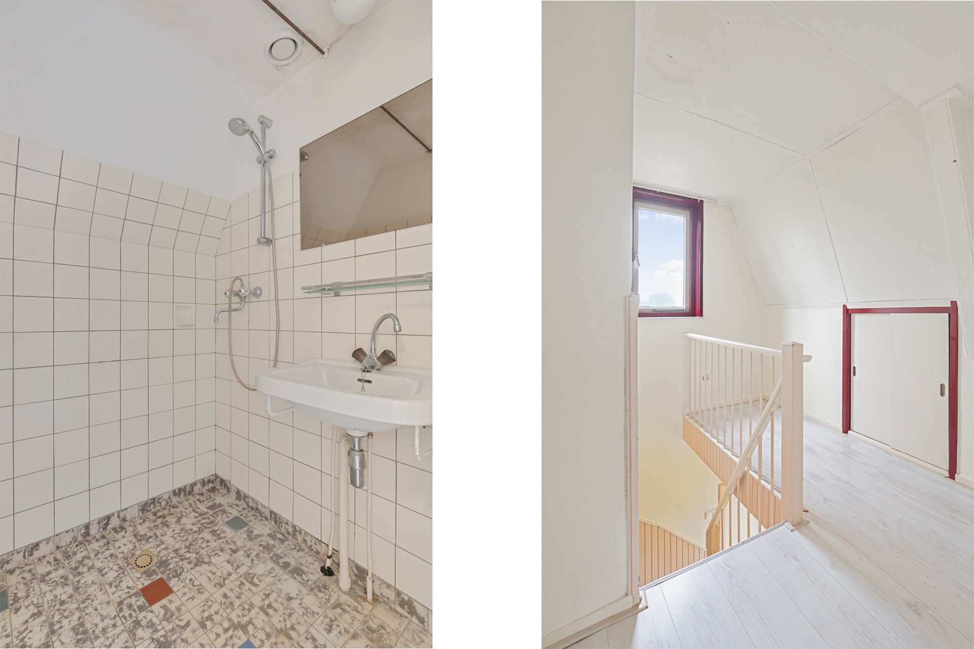 Middels de vaste trap komt u op de overloop, waar toegang is tot 3 slaapkamers. Ook is er een badkamer met douche en wastafel. Er is tevens een zolder.