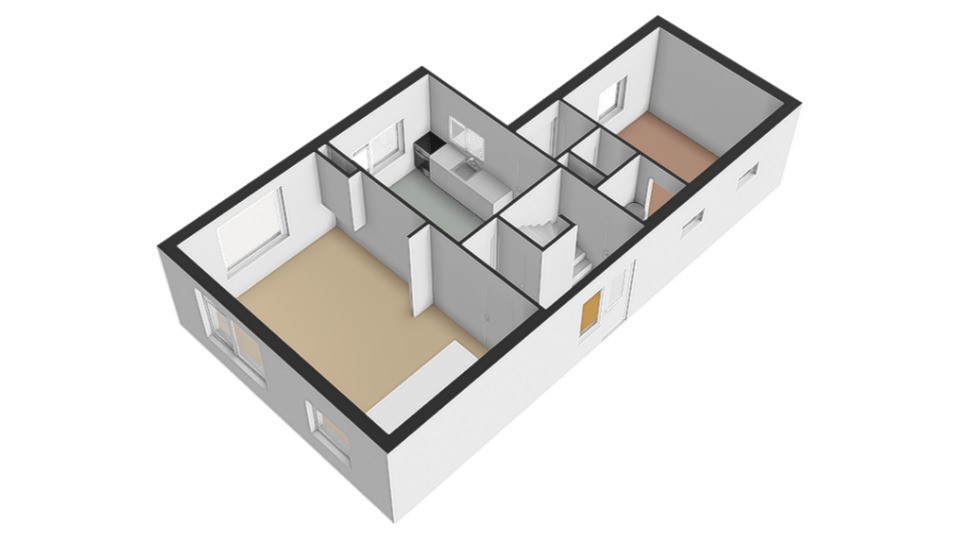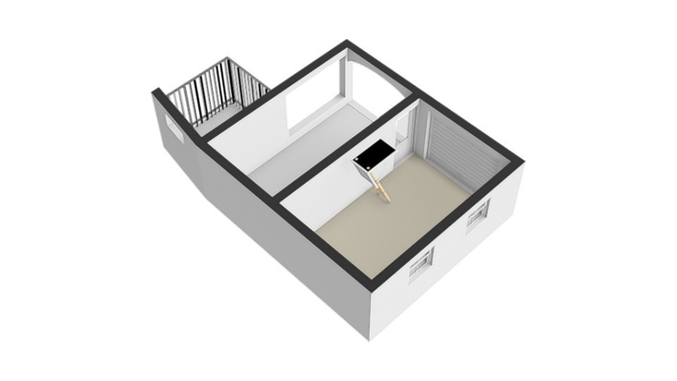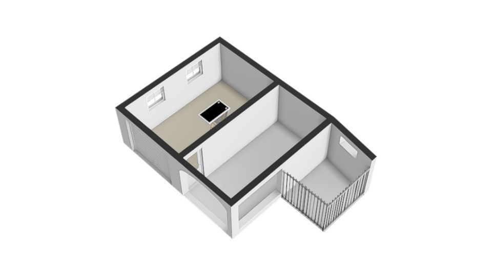 Opgetrokken in hout op een gemetselde plint met een klein houten gedeelte aangrenzend. De oppervlakte is ca. 16,5 m².