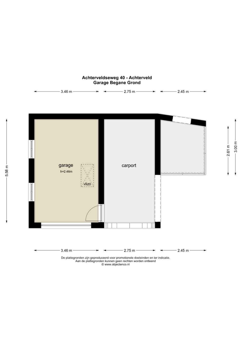 Naast de woning staat een charmante stenen garage. De afmeting is ca. 5,5 x 3,5 m. = 19,25 m². Naast de garage is een carport met een afmeting van ca. 5,5 x 2,75 m.= 15 m². Boven de garage en carport is een zolder, bereikbaar via een vaste houten trap.