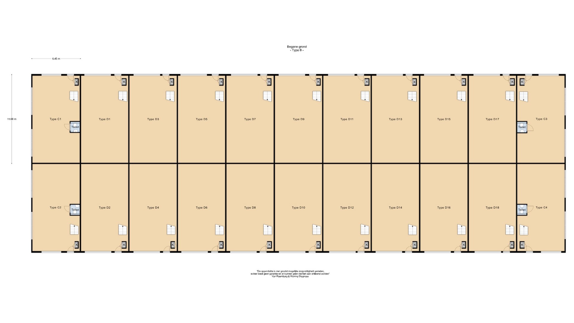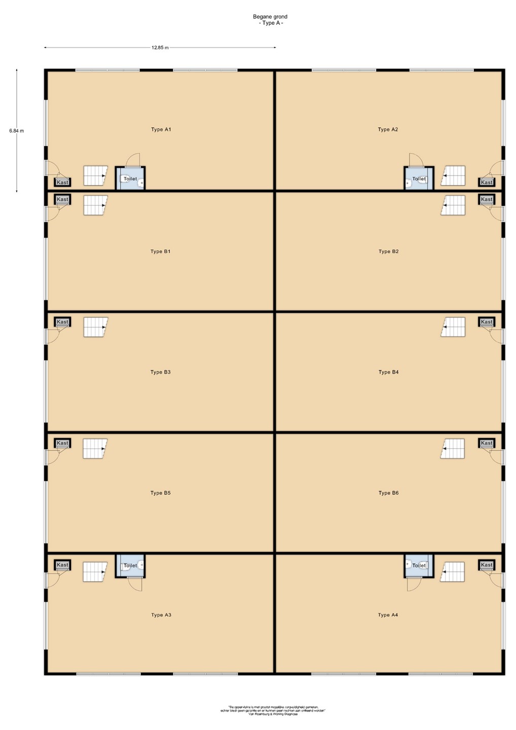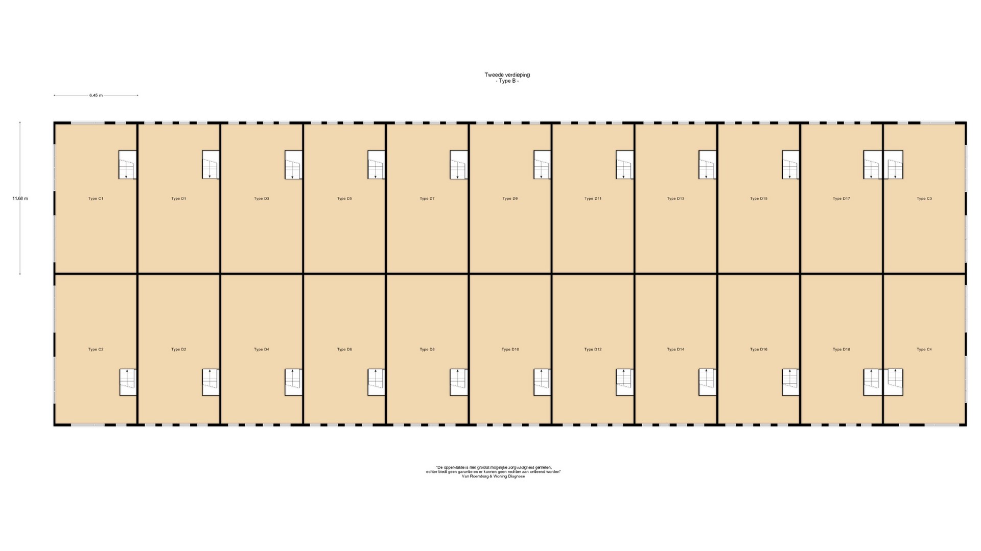 De genoemde metrages zijn niet bepaald op basis van een NEN-meting en derhalve indicatief en vrijblijvend van aard.
