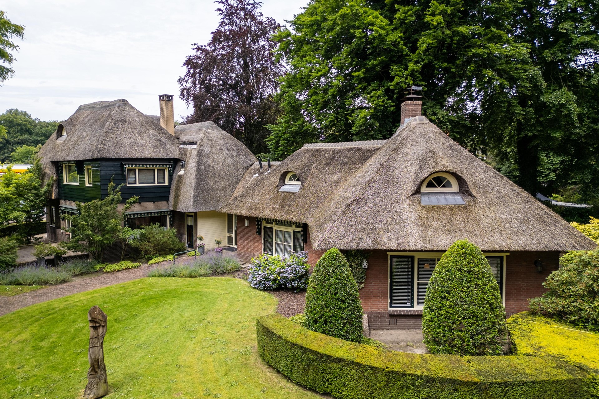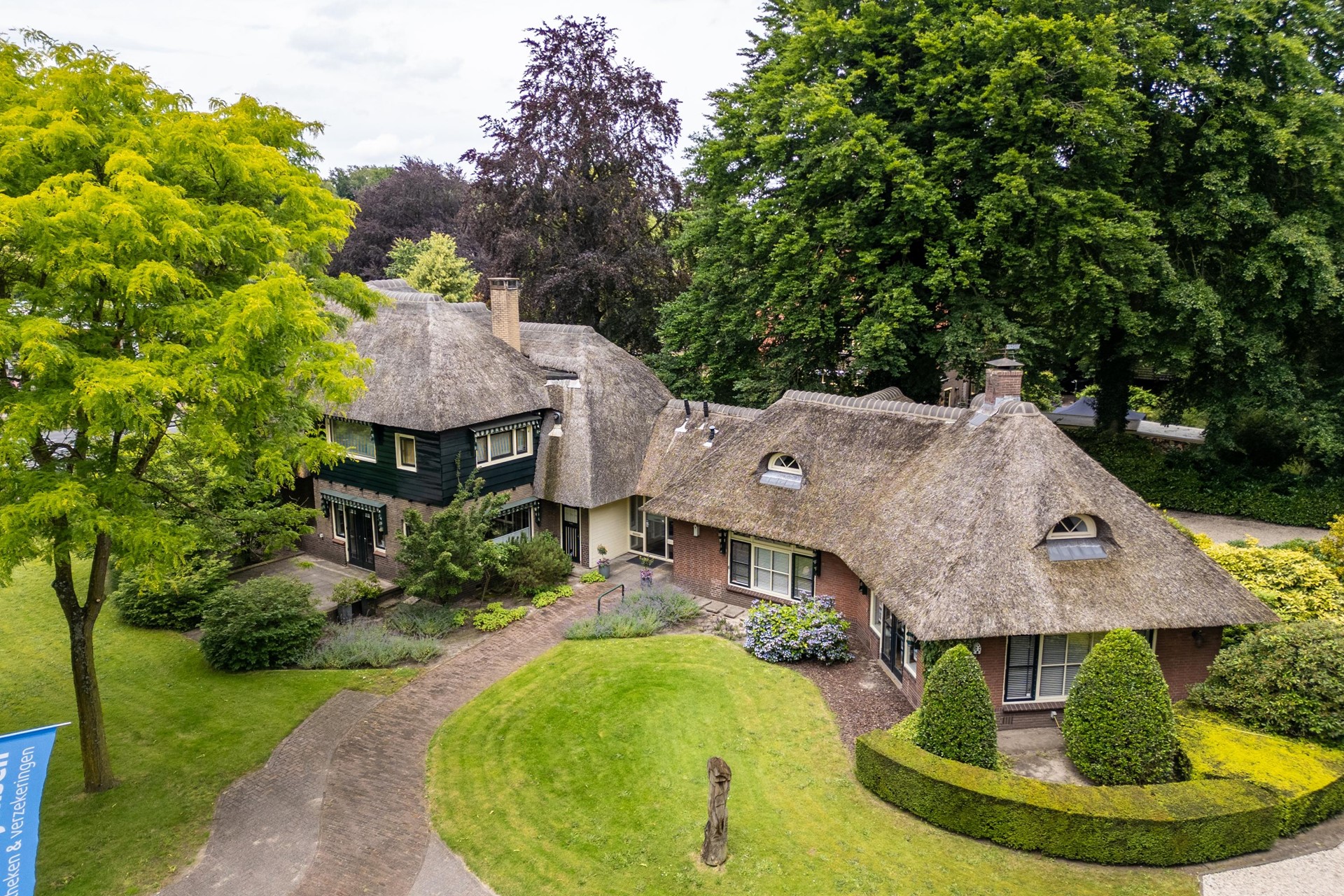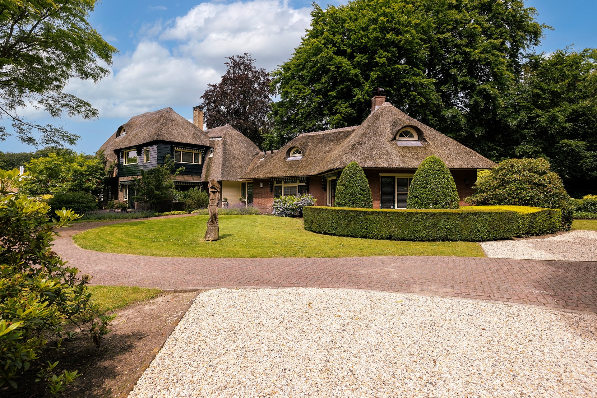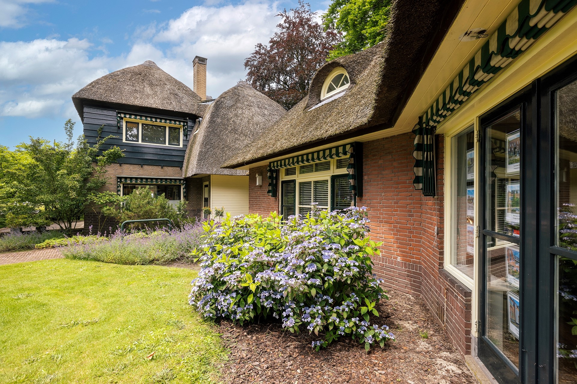 Rietgedekte monumentale VILLA’s met vele historische kenmerken horen in een mooie balans te zijn met het omliggende erf. En dat is op dit perceel zeker gelukt! Volwassen loofbomen, uitbundige en royale rododendrons, rondom hagen en een royale gazonpartij maken het plaatje compleet. Ook de afwisseling van grind en keurig straatwerk passen in het geheel. Op het perceel zijn veel parkeerplaatsen gecreëerd vanwege het bedrijfsmatig gebruik van de panden. Uiteraard kunt u rondom meerdere terrassen aanleggen om te genieten van deze wonderschone plek.