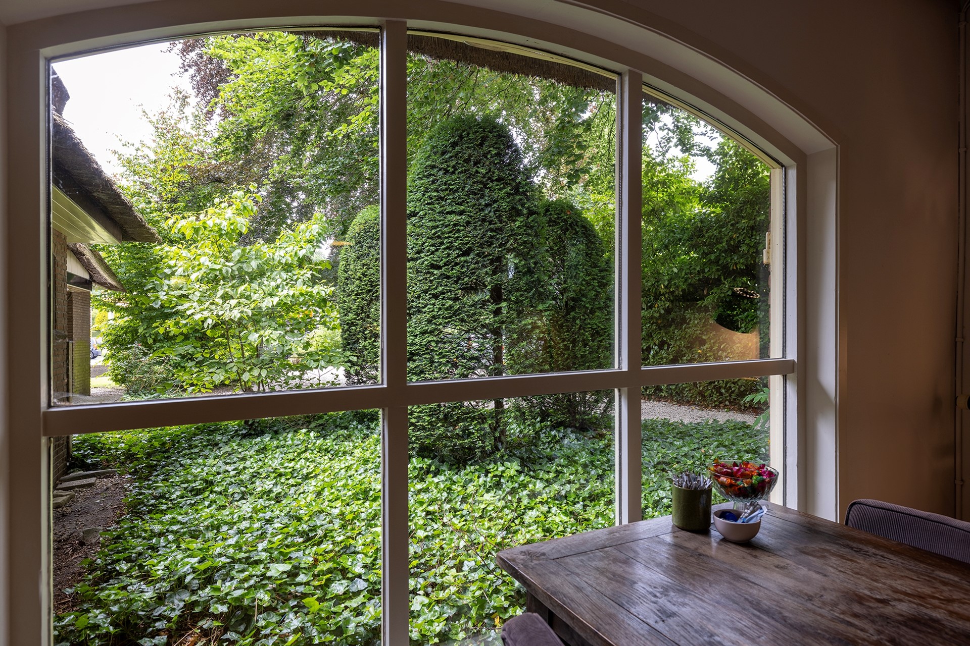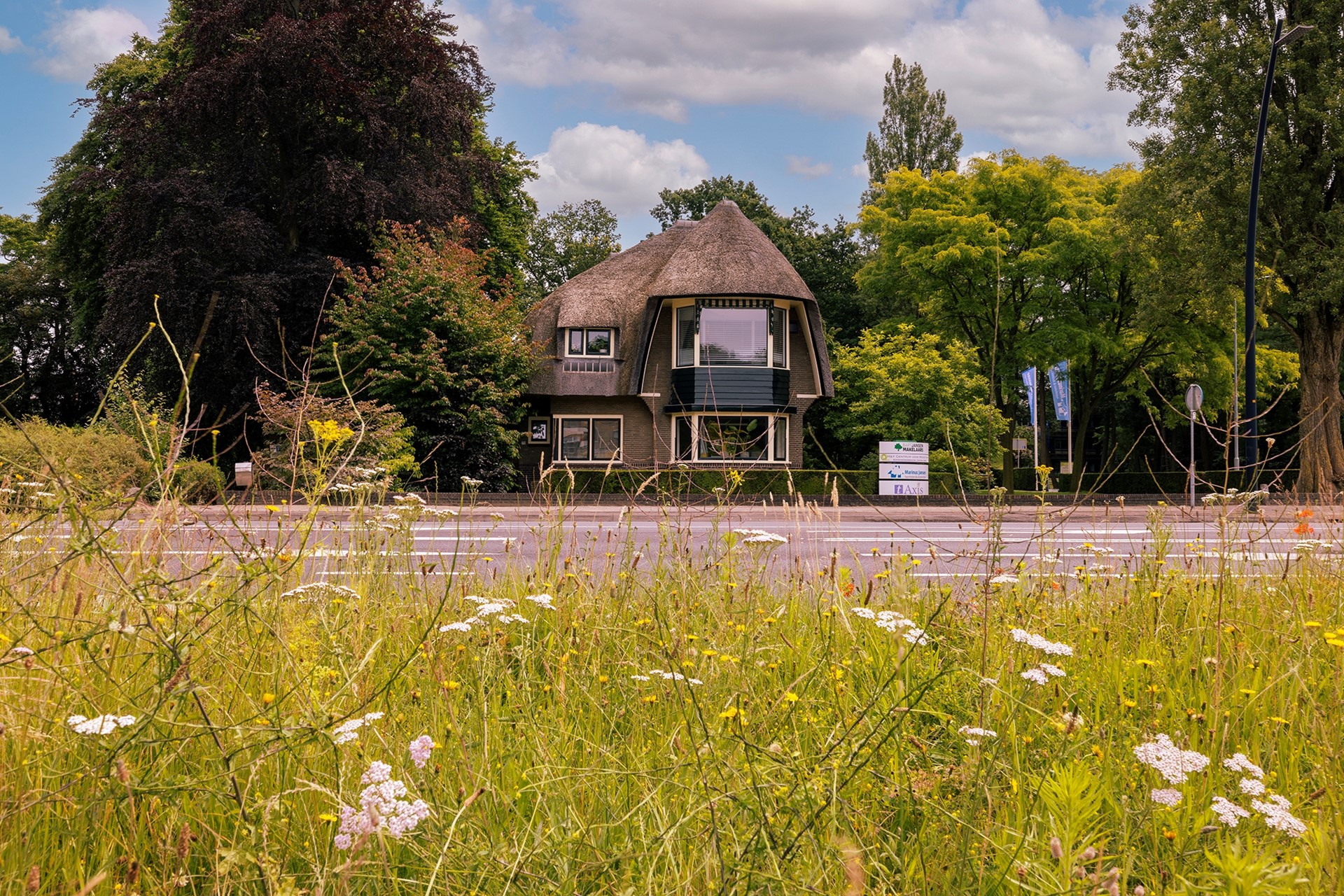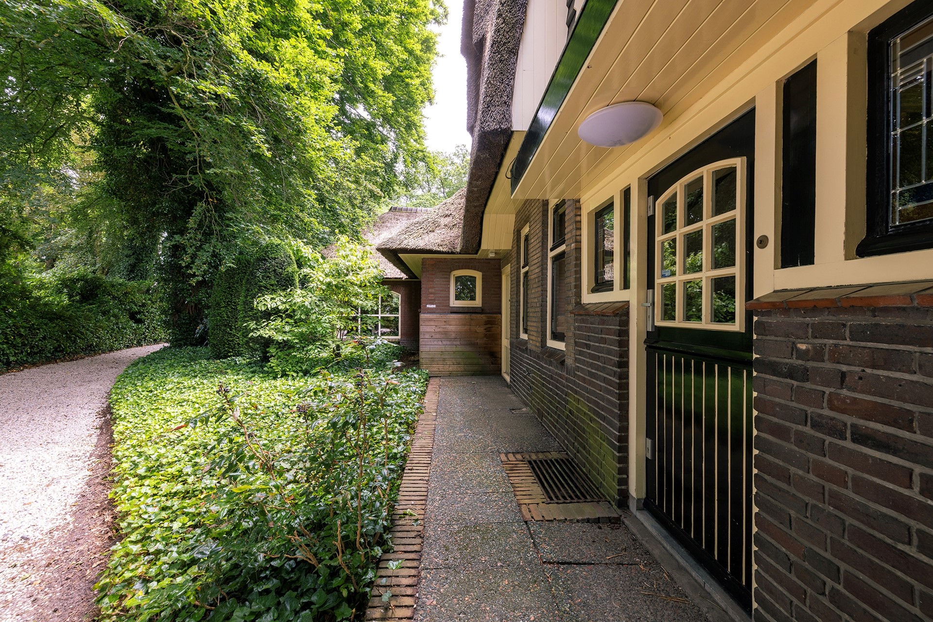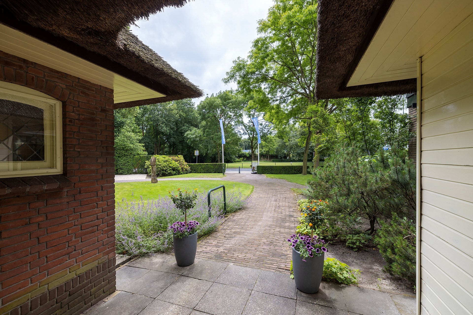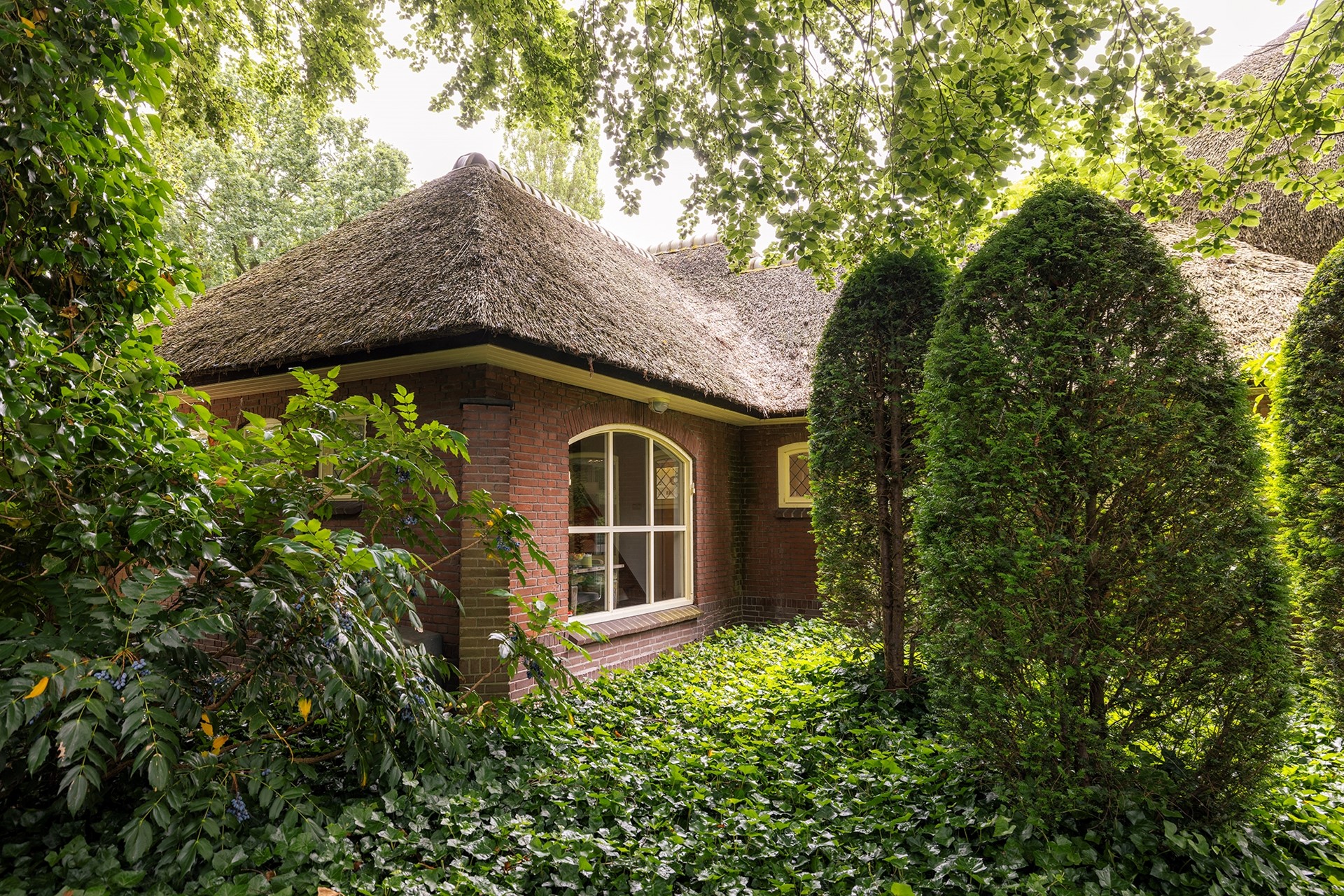 Rietgedekte monumentale VILLA’s met vele historische kenmerken horen in een mooie balans te zijn met het omliggende erf. En dat is op dit perceel zeker gelukt! Volwassen loofbomen, uitbundige en royale rododendrons, rondom hagen en een royale gazonpartij maken het plaatje compleet. Ook de afwisseling van grind en keurig straatwerk passen in het geheel. Op het perceel zijn veel parkeerplaatsen gecreëerd vanwege het bedrijfsmatig gebruik van de panden. Uiteraard kunt u rondom meerdere terrassen aanleggen om te genieten van deze wonderschone plek.