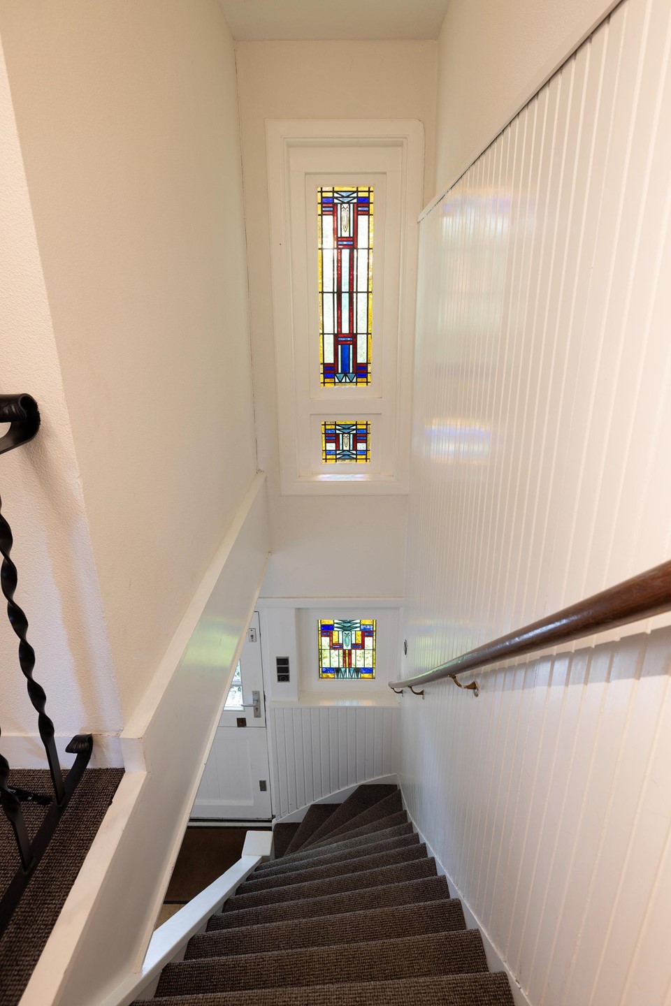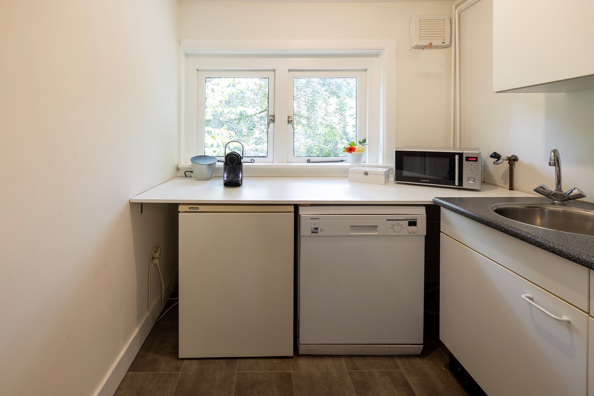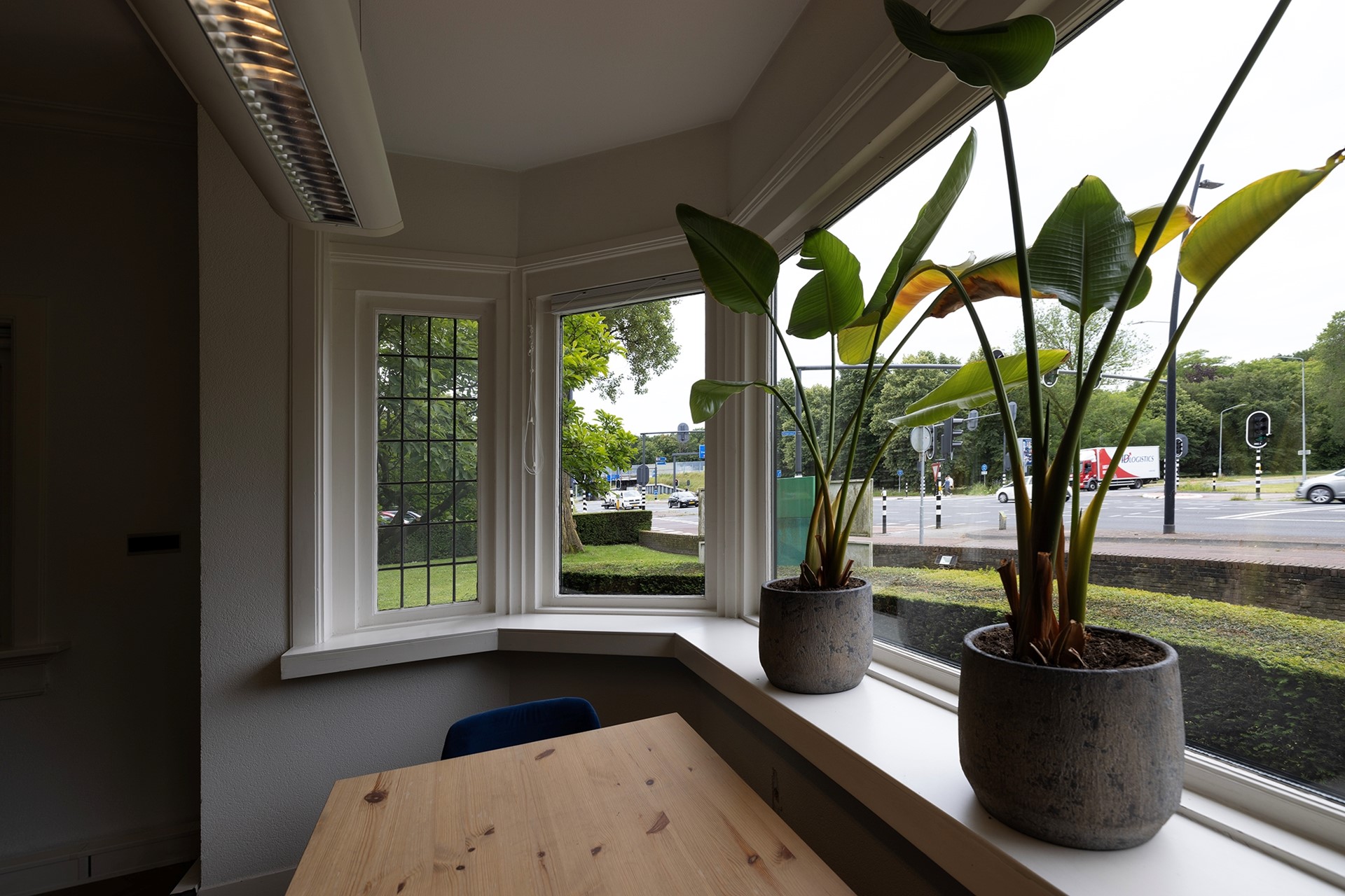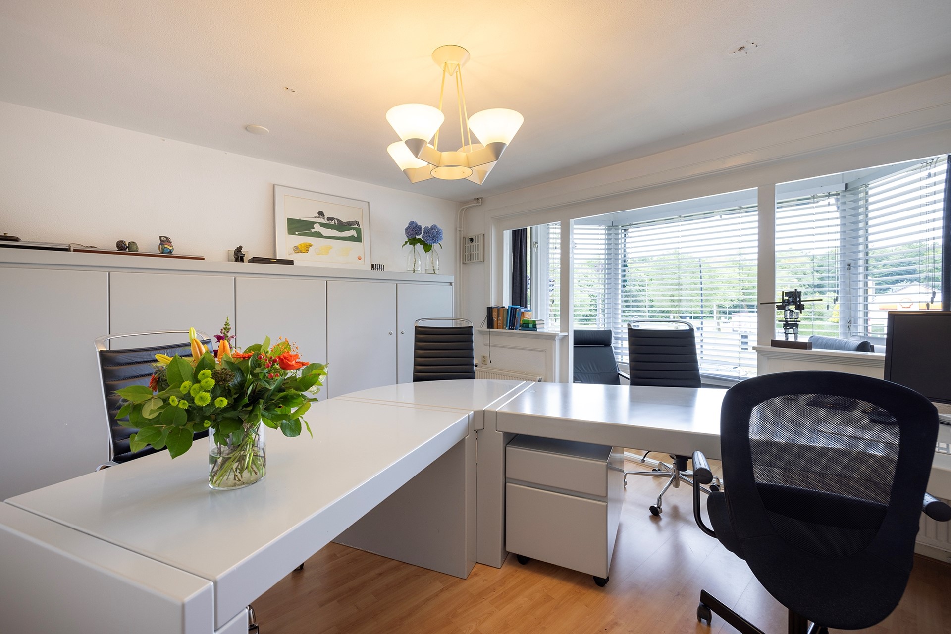 Op de eerste verdieping zijn eveneens vier werkkamers ingericht. Aan de linkerzijde is een kantoor en middels een aantal treden komt u in een ruime kamer die momenteel als archief wordt gebruikt. Deze ruimte is ideaal als een aparte zit- of studeerkamer bij de slaapkamer. En wat dacht u van een game- of chillkamer voor uw tieners? Het is mogelijk om vanuit deze ruimte toegang te creëren tot de eerste verdieping van Engelserf. De mogelijkheden zijn bijna onbeperkt! Kantoor twee heeft als eyecatcher een sfeervolle erker en een mooi uitzicht over de Oranjelaan. Onder de trap is een ingebouwde kast aanwezig. Kantoor drie is ruim en zelfs voorzien van twee ingebouwde kasten. De vierde werkkamer bevindt zich in de voormalige badkamer. De naastgelegen pantry heeft een eenvoudig keukenblok.
