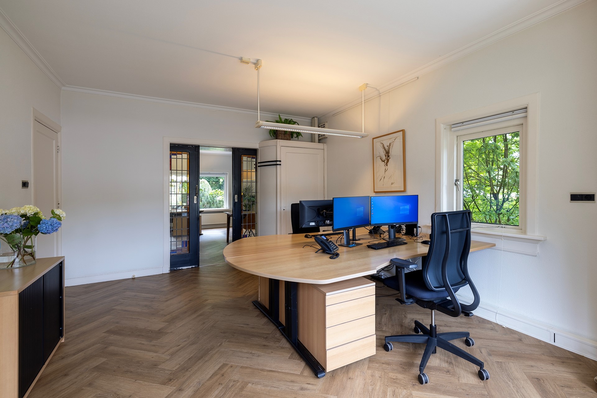 Ontdek deze twee karakteristieke kantoorvilla's, perfect voor een prestigieuze kantoorlocatie inclusief voldoende parkeergelegenheid op eigen terrein. Deze rietgedekte panden zijn elegant, functioneel en hebben een historische uitstraling. De villa’s zijn gelegen op twee separate percelen en op beide panden rust een kantoorbestemming en er is één woning toegestaan. U kunt één van de villa’s als ruime woning benutten en daarnaast is deze locatie uitermate geschikt voor gebruik als representatieve kantoorruimtes. Ideaal voor ondernemers die werk en privé willen combineren zonder concessies te doen aan stijl en uitstraling.