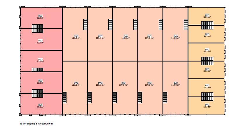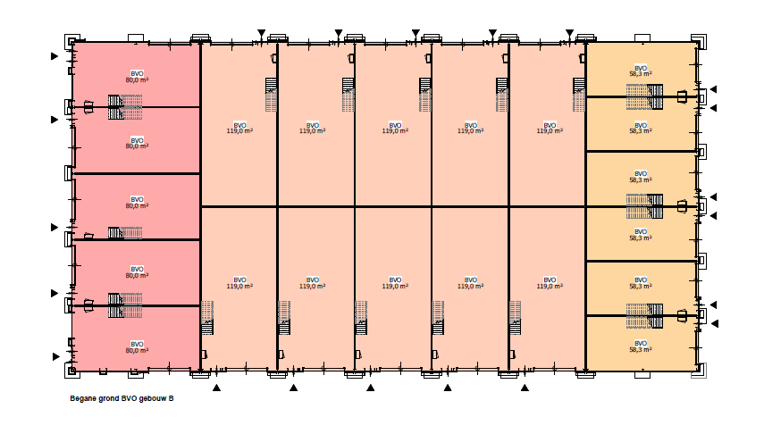 Iedere bedrijfsruimte beschikt over twee eigen parkeerplaatsen.
